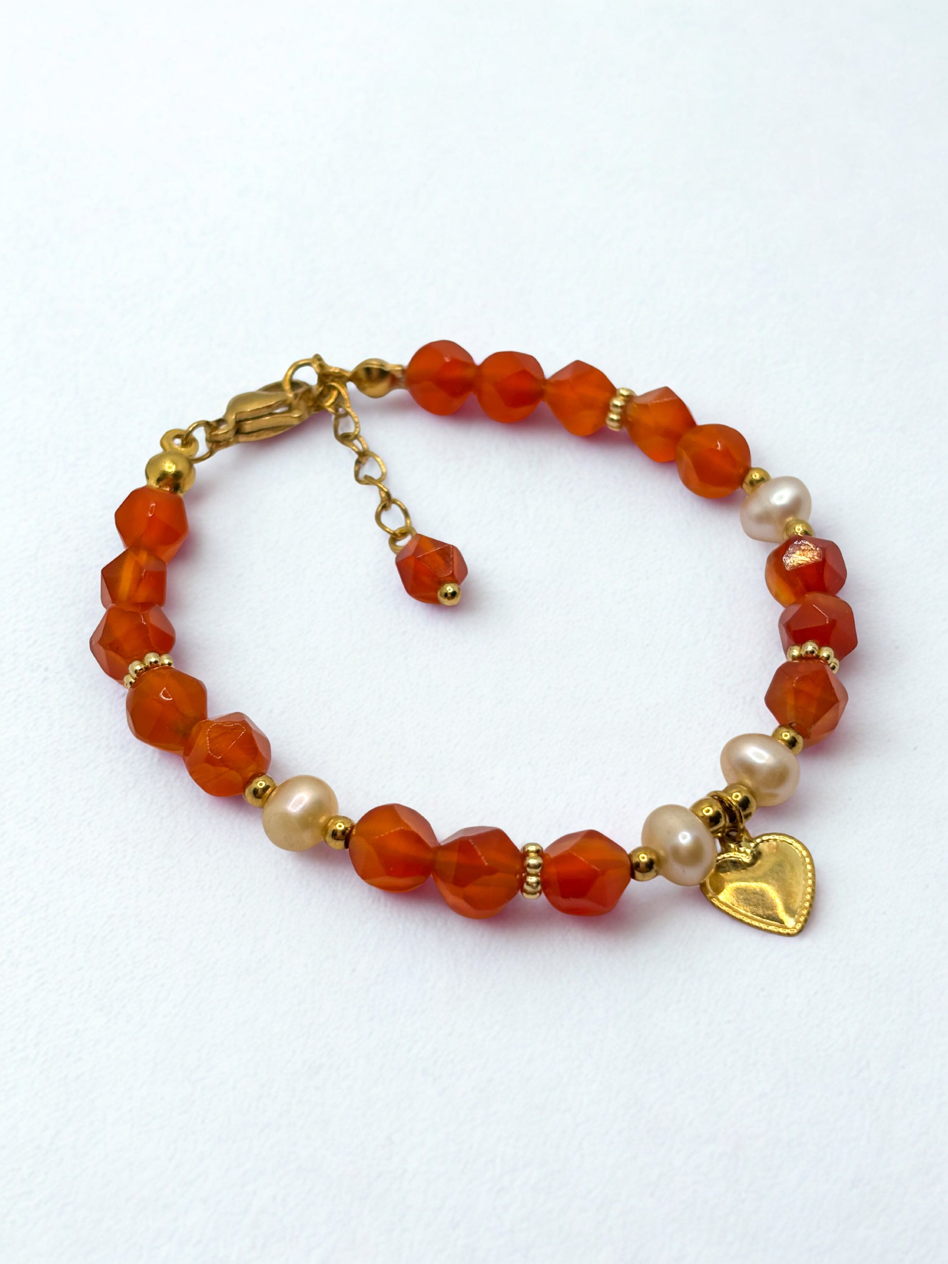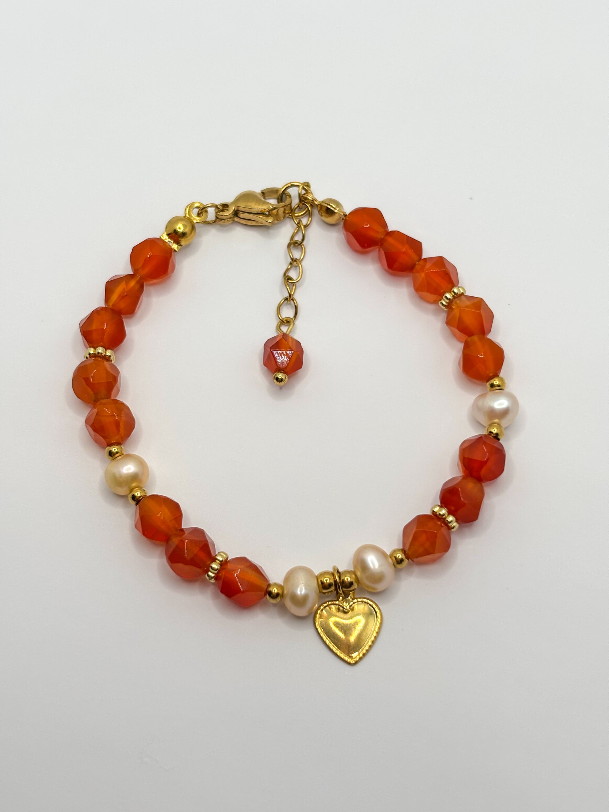 Add a touch of elegance to your wardrobe with our Faceted Stone and Pearl Bracelet. Made with lustrous freshwater pearls and faceted stones, accented with stainless steel gold elements and a sweet heart charm. Comfortable and stunning, perfect for any occasion.